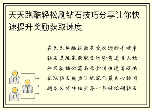 《地铁跑酷》作为一款风靡全球的休闲游戏,凭借其简单有趣的玩法以及充满挑战性的跑酷模式,吸引了大量玩家的参与。游戏中的“技巧卡”和“钥匙”作为两种重要的道具,可以在提高玩家游戏成绩、解锁奖励以及提升游戏体验方面发挥重要作用。本文将围绕如何通过技巧卡和钥匙快速提升成绩以及解锁奖励进行详细的阐述,探讨如何...